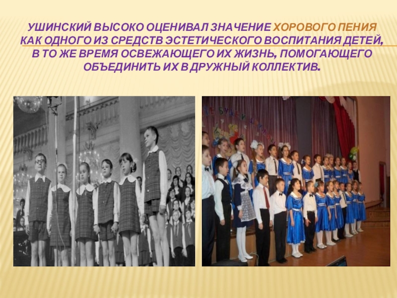 Ушинский высоко оценивал значение хорового пения как одного из средств эстетического воспитания детей, в то же время