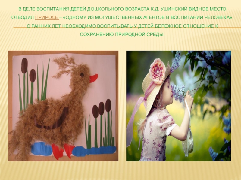 В деле воспитания детей дошкольного возраста К.Д. Ушинский видное место отводил природе – «одному из могущественных агентов