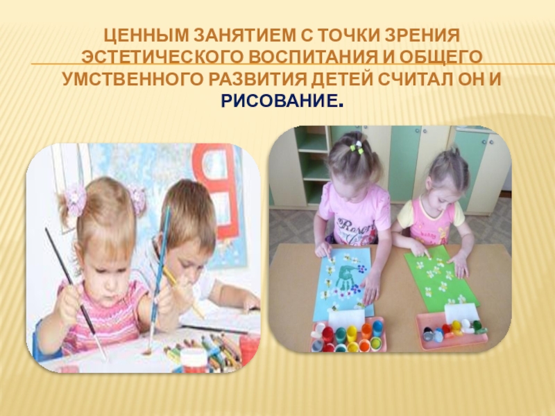 Ценным занятием с точки зрения эстетического воспитания и общего умственного развития детей считал он и рисование.