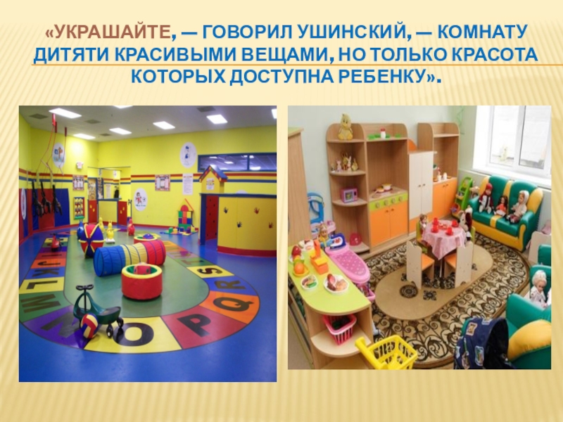 Слайд 5«Украшайте, — говорил Ушинский, — комнату дитяти красивыми вещами, но только