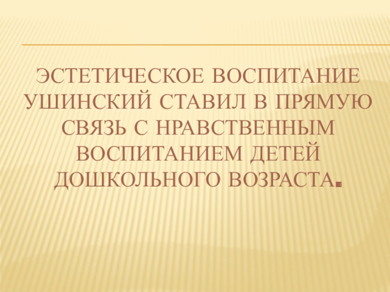 Эстетическое воспитание Ушинский ставил в прямую связь с нравственным воспитанием детей дошкольного возраста.