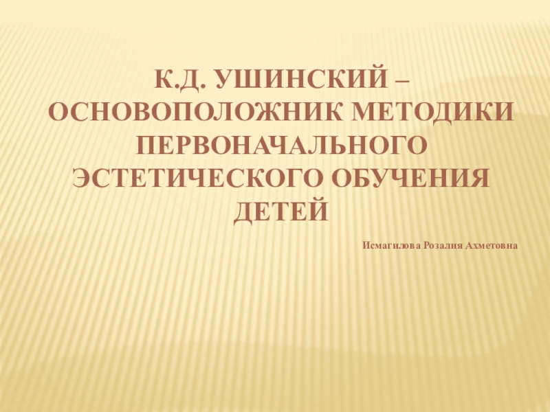 Слайд 1 К.Д. УШИНСКИЙ – ОСНОВОПОЛОЖНИК МЕТОДИКИ ПЕРВОНАЧАЛЬНОГО ЭСТЕТИЧЕСКОГО ОБУЧЕНИЯ ДЕТЕЙ