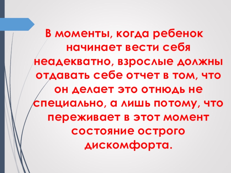 Слайд 2В моменты, когда ребенок начинает вести себя неадекватно, взрослые должны отдавать