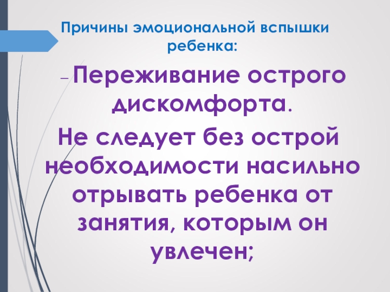 Слайд 5Причины эмоциональной вспышки ребенка: