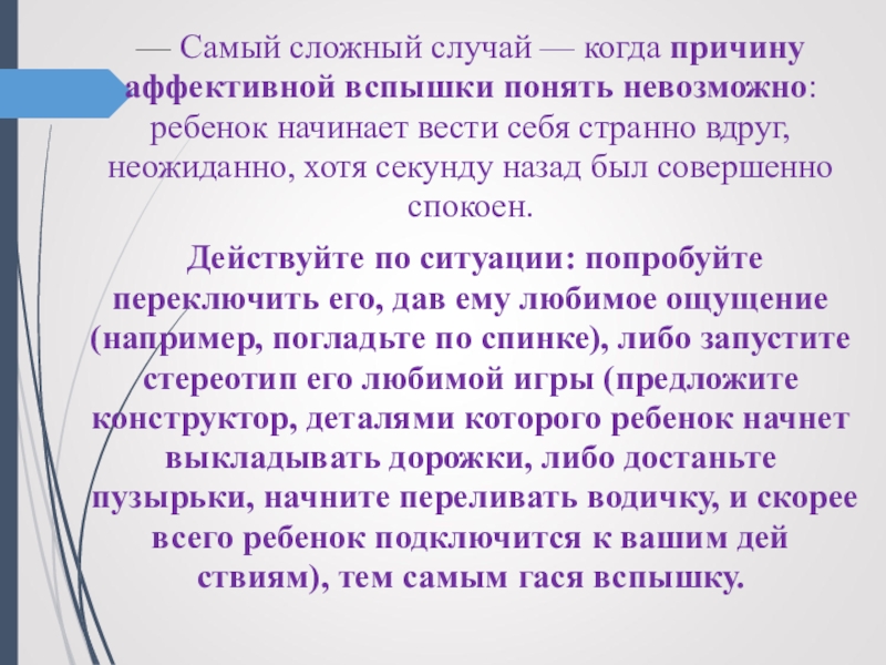 Слайд 9— Самый сложный случай — когда причину аффективной вспышки понять невозможно: