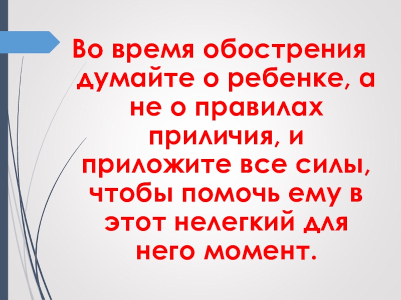 Слайд 3Во время обострения думайте о ребенке, а не о правилах приличия,