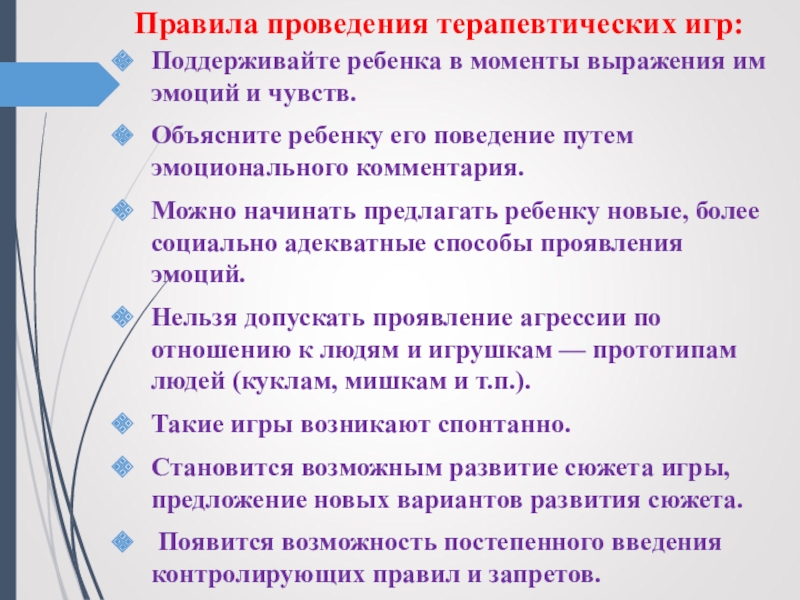 4. Проводить терапевтические игры следует в спокойной обстановке.