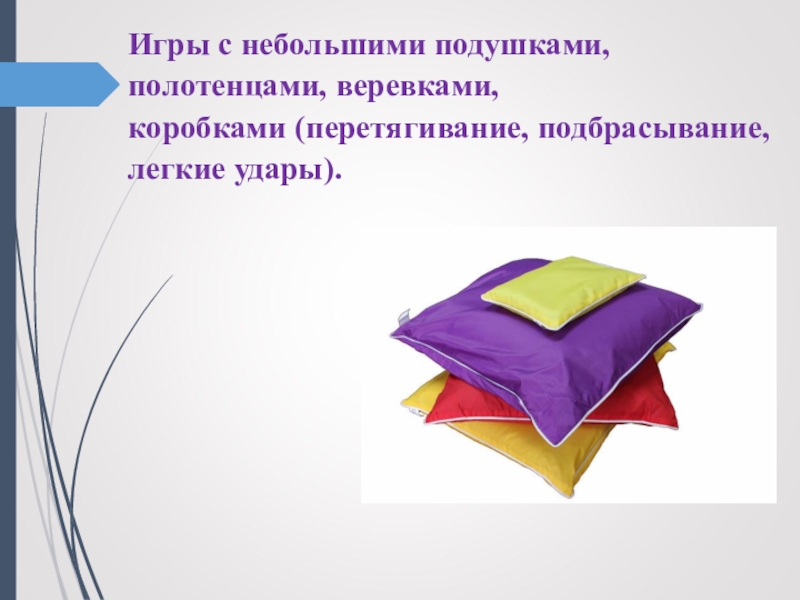 Слайд 18Игры с небольшими подушками, полотенцами, веревками,