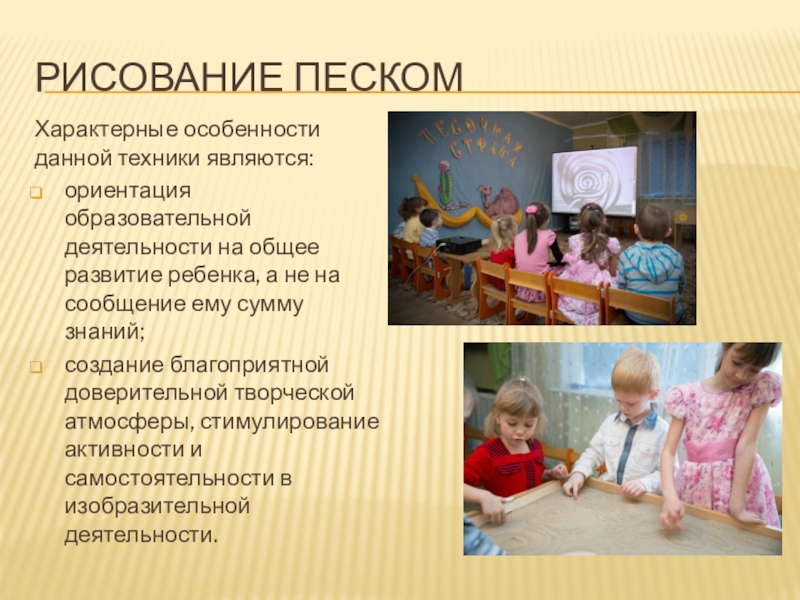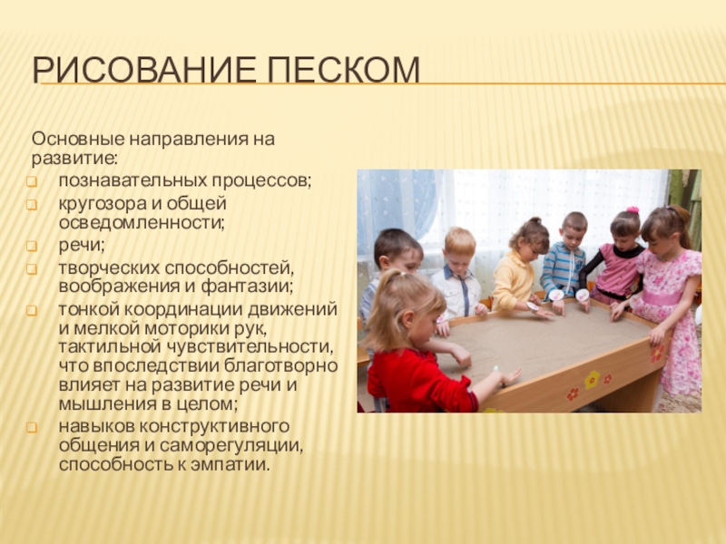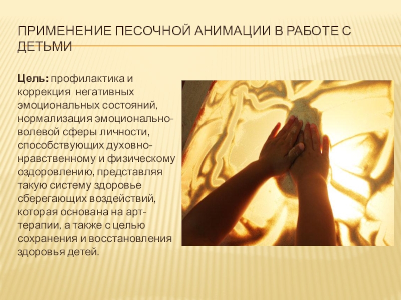 Цель технологии: профилактика нарушений психоэмоционального и психофизического состояния детей, обучение особенностям техники рисования песком, развитие когнитивных процессов и творческого интереса.
