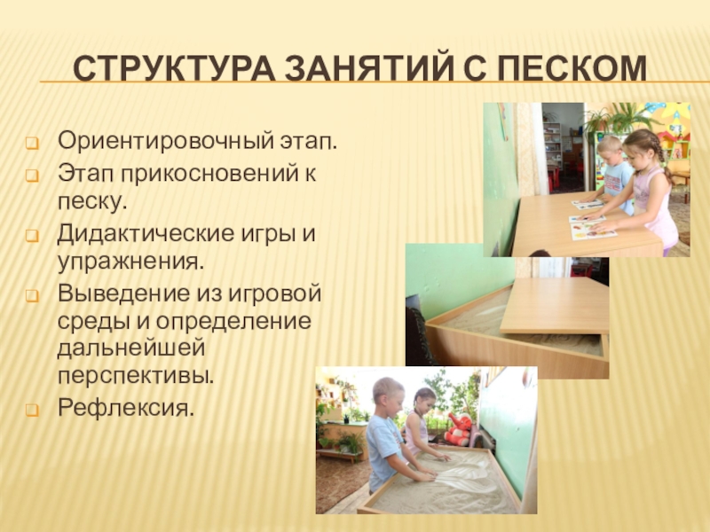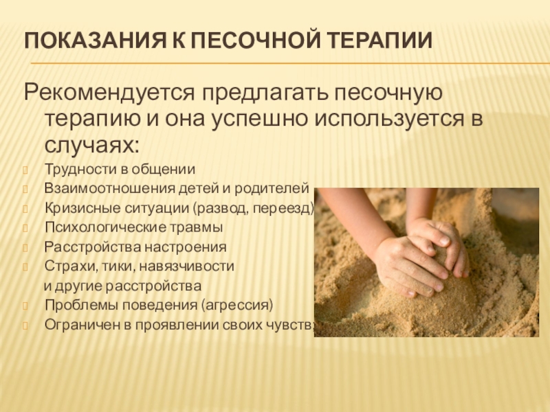 Дать представление самого процесса песочной терапии с дошкольниками.