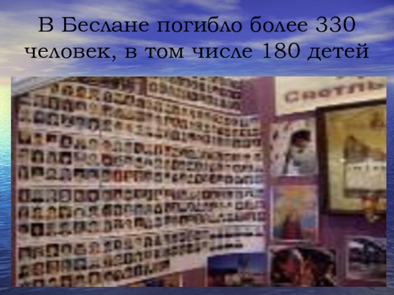 Слайд 22В Беслане погибло более 330 человек, в том числе 180 детей