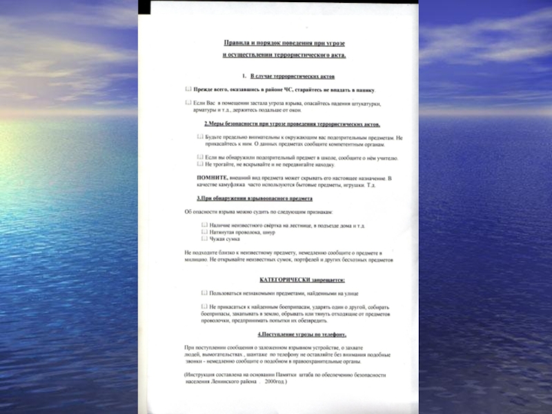принять меры к беспрепятственному проходу (проезду) на объект сотрудников правоохранительных органов, МЧС, автомашин скорой медицинской помощи;