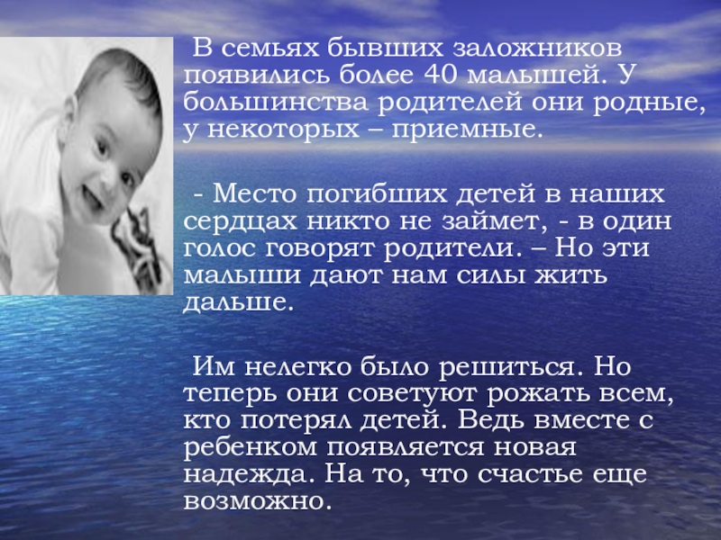 В семьях бывших заложников появились более 40 малышей. У большинства родителей они родные, у