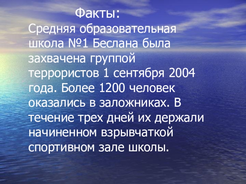Слайд 4 Факты: Средняя образовательная школа №1 Беслана