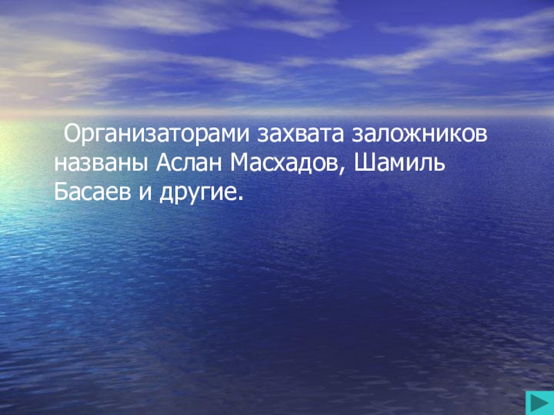 Слайд 17 Организаторами захвата заложников названы Аслан Масхадов, Шамиль Басаев и