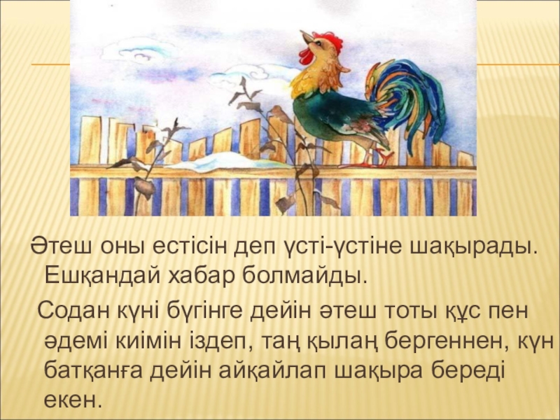 Слайд 7 Әтеш оны естісін деп үсті-үстіне шақырады. Ешқандай хабар болмайды.