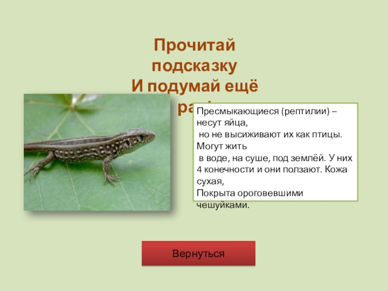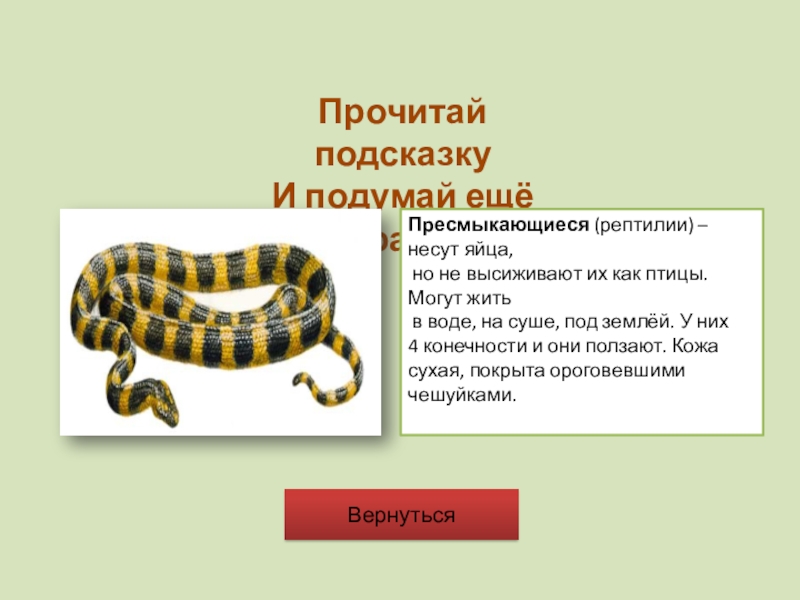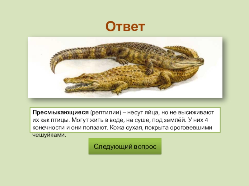 Пресмыкающиеся (рептилии) – несут яйца, но не высиживают их