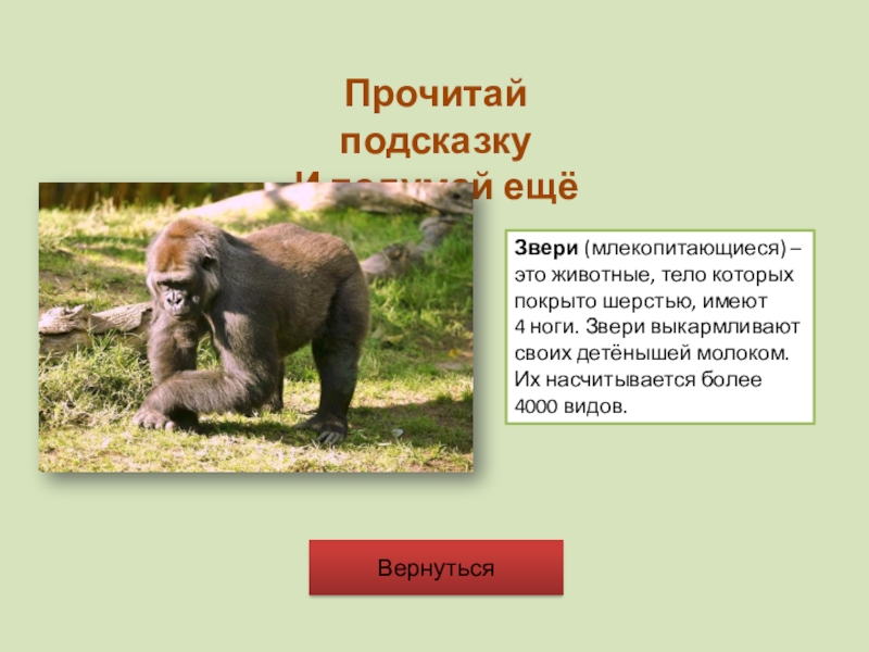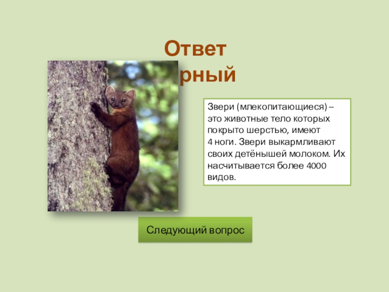 Звери (млекопитающиеся) – это животные тело которых покрыто шерстью,