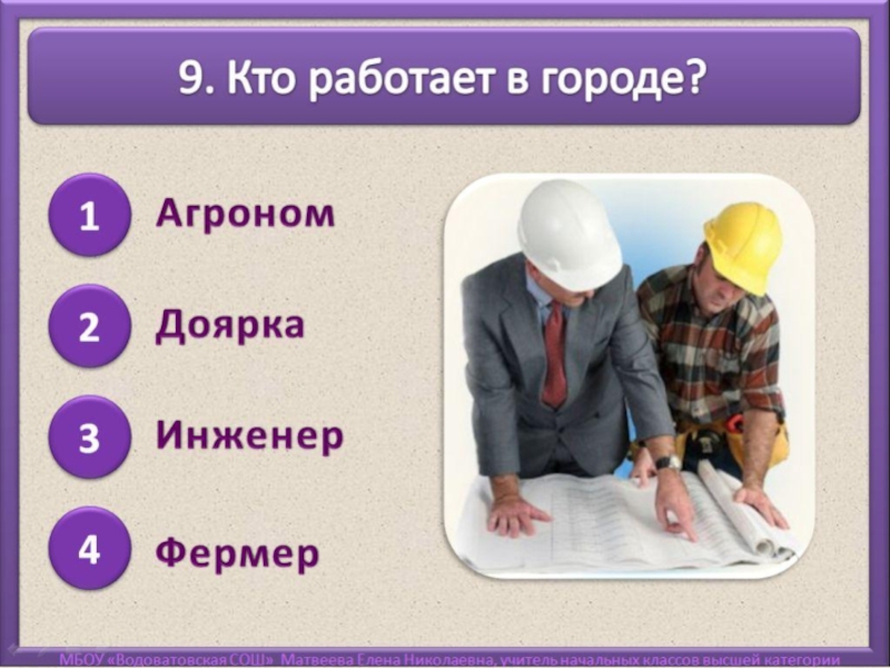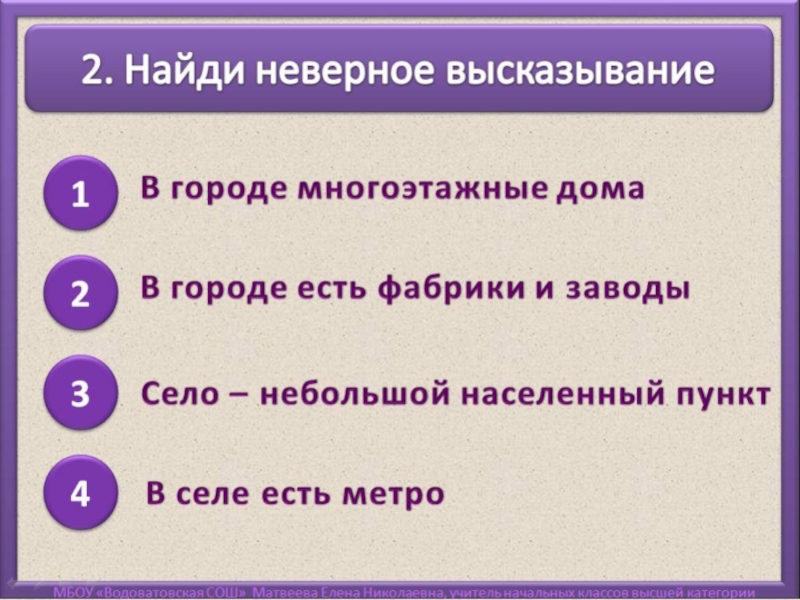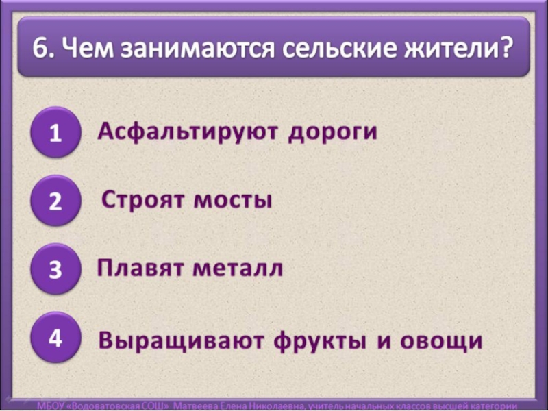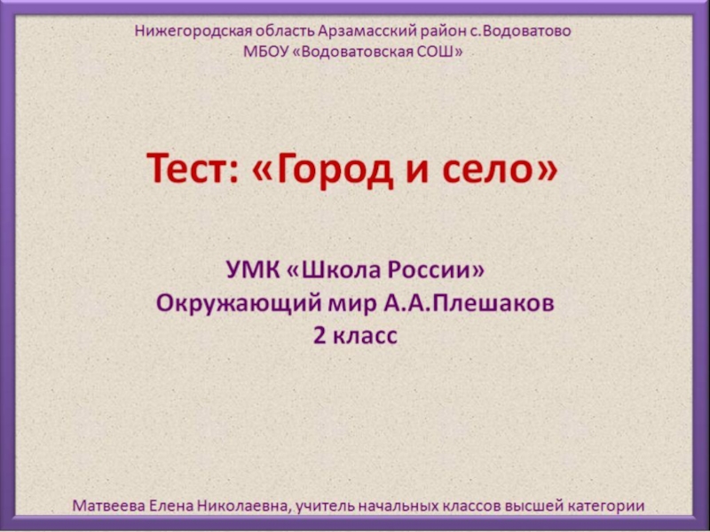 Презентация, доклад на тему Тест по окружающему миру Город и село (2 класс)