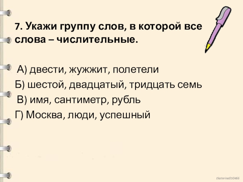 Слайд 87. Укажи группу слов, в которой все слова – числительные.