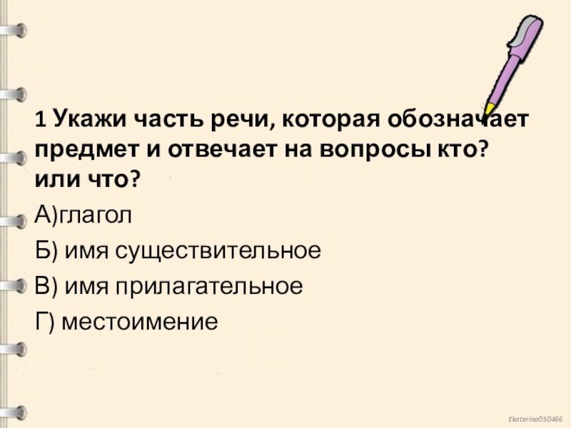 Слайд 21 Укажи часть речи, которая обозначает предмет и отвечает на вопросы