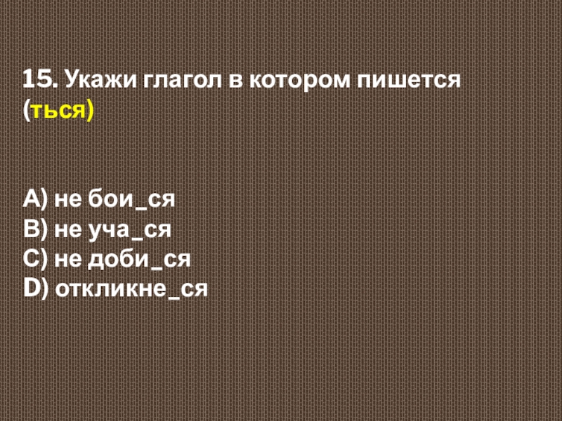 Слайд 1615. Укажи глагол в котором пишется(ться)