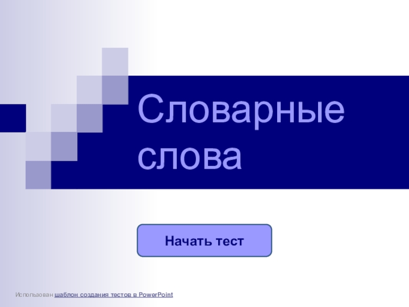 Начать тестИспользован шаблон создания тестов в PowerPointСловарные слова