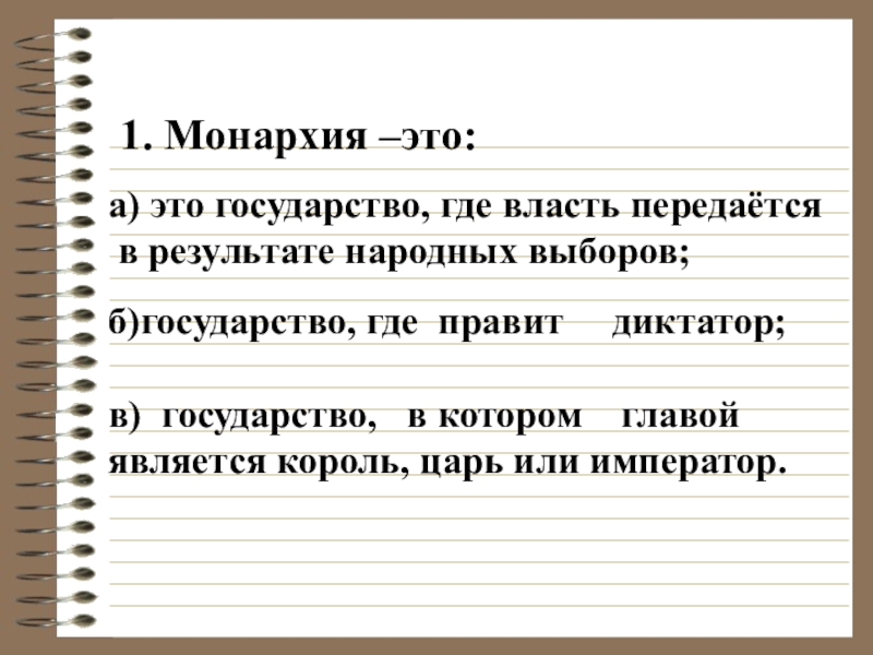 в) государство, в котором главой является король, царь или император.