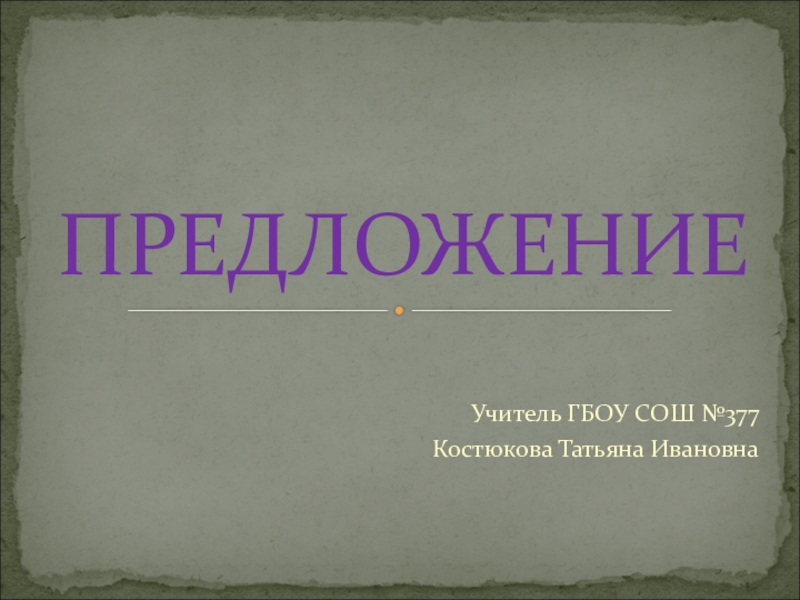 Учитель ГБОУ СОШ №377Костюкова Татьяна ИвановнаПРЕДЛОЖЕНИЕ