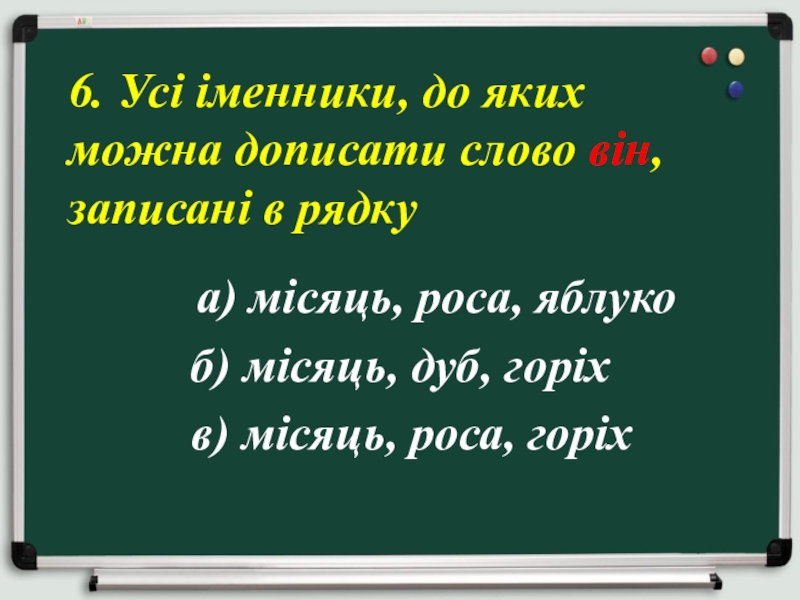 6. Усі іменники, до яких можна дописати слово він, записані в рядку