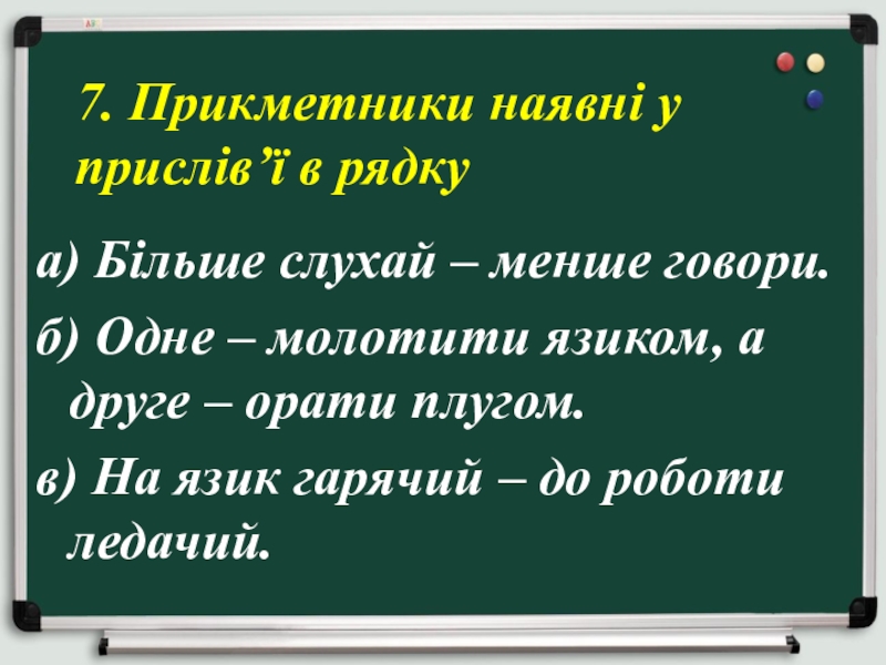 7. Прикметники наявні у прислів’ї в рядку