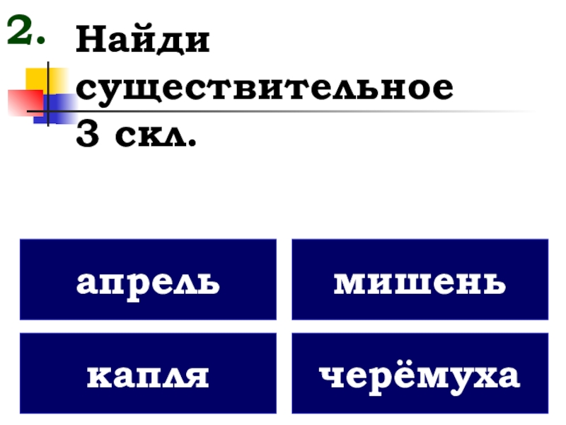 Найди существительное     3 скл.капляапрельмишеньчерёмуха2.