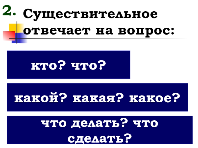 Существительное отвечает на вопрос:что делать? что сделать?какой? какая? какое?кто? что?2.