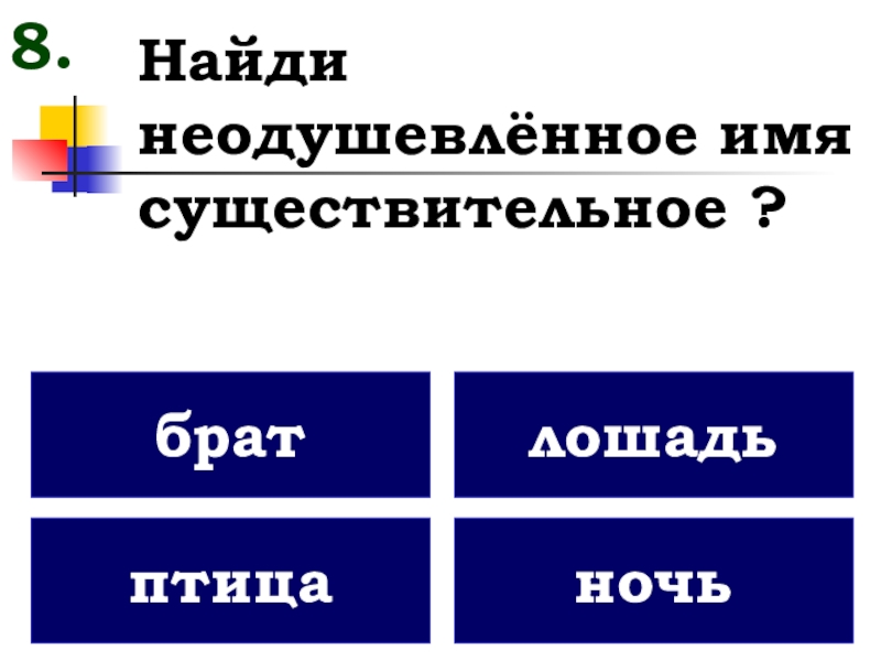 Найди неодушевлённое имя существительное ?птицабратлошадьночь8.