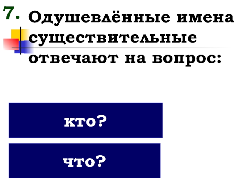 Одушевлённые имена существительные отвечают на вопрос:что?кто?7.