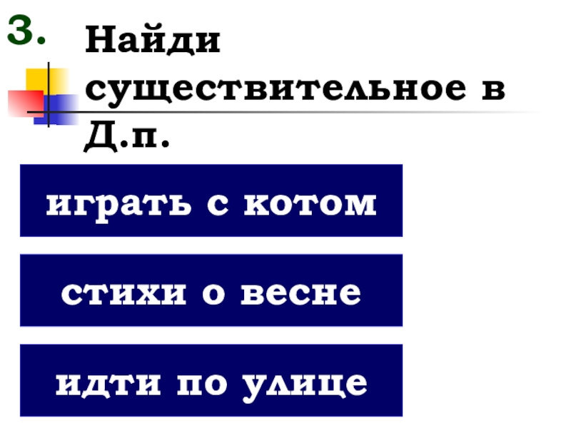 Найди существительное в Д.п.идти по улицестихи о веснеиграть с котом3.