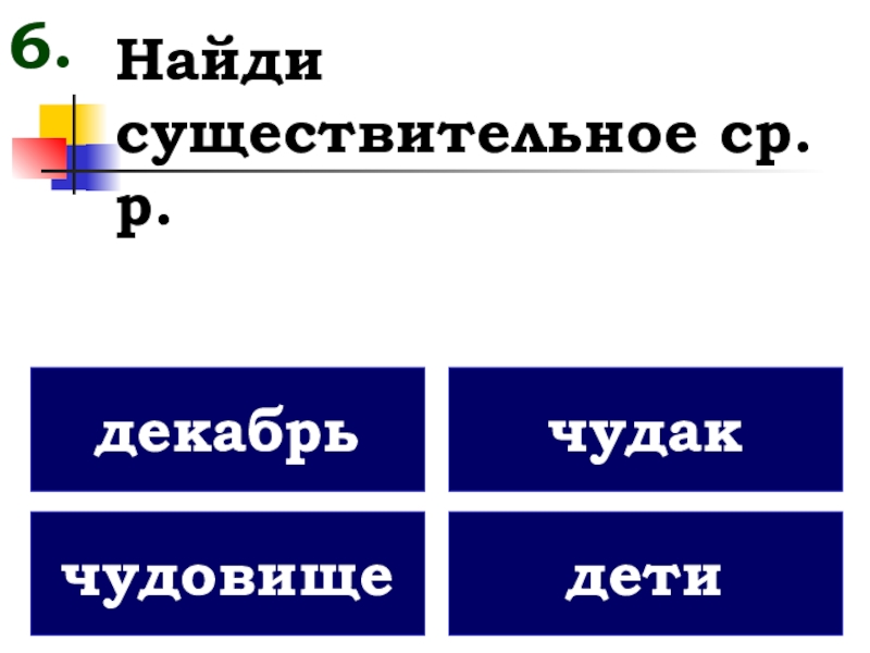 Найди существительное ср.р.чудовищедекабрьчудакдети6.