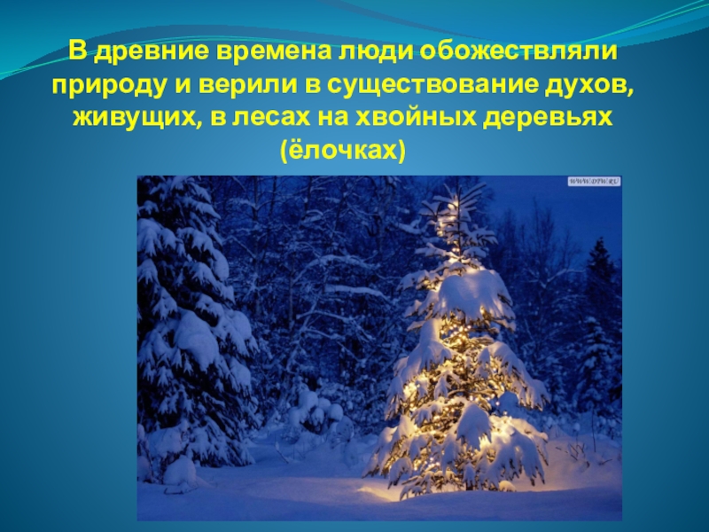 В древние времена люди обожествляли природу и верили в существование духов, живущих, в лесах на хвойных деревьях (ёлочках)