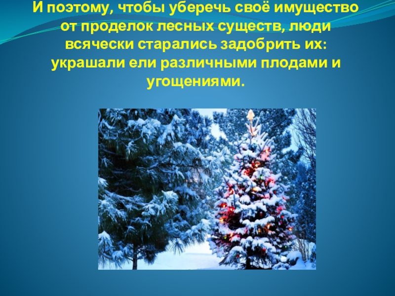 всячески старались задобрить их: украшали ели различными плодами и угощениями.