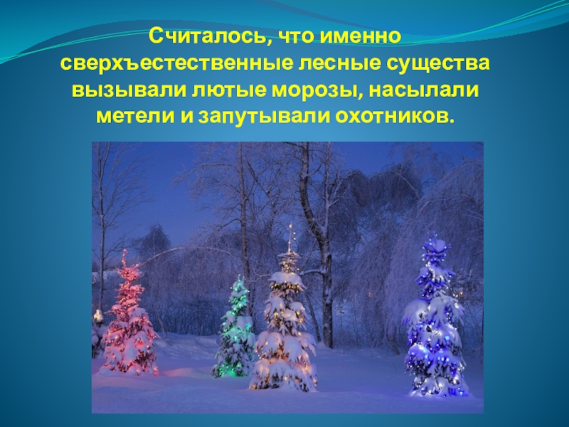 Слайд 3Считалось, что именно сверхъестественные лесные существа вызывали лютые морозы, насылали метели