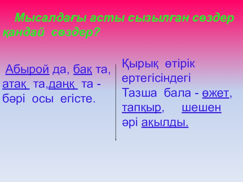 Мысалдағы асты сызылған сөздер қандай сөздер?
