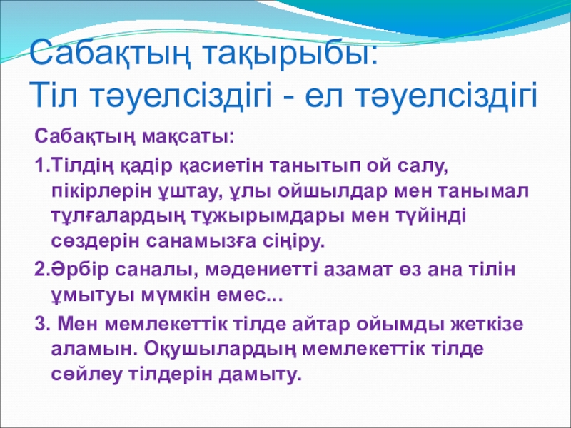 Тіл тәуелсіздігі - ел тәуелсіздігі