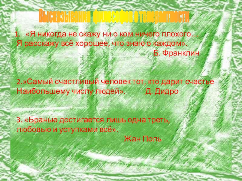 Это сайт презентаций, где можно хранить и обмениваться своими презентациями, докладами, проектами, шаблонами в формате PowerPoint с другими пользователями. Мы помогаем школьникам, студентам, учителям, преподавателям хранить и обмениваться учебными материалами.