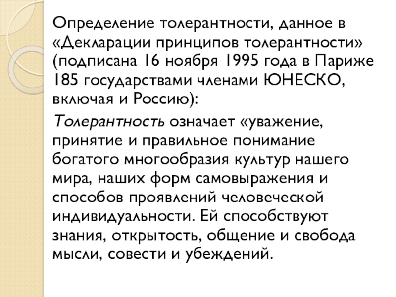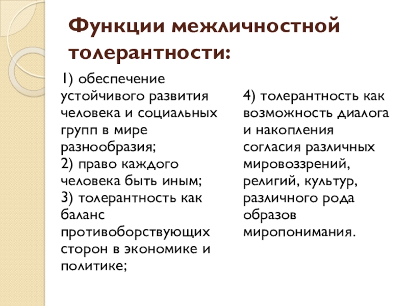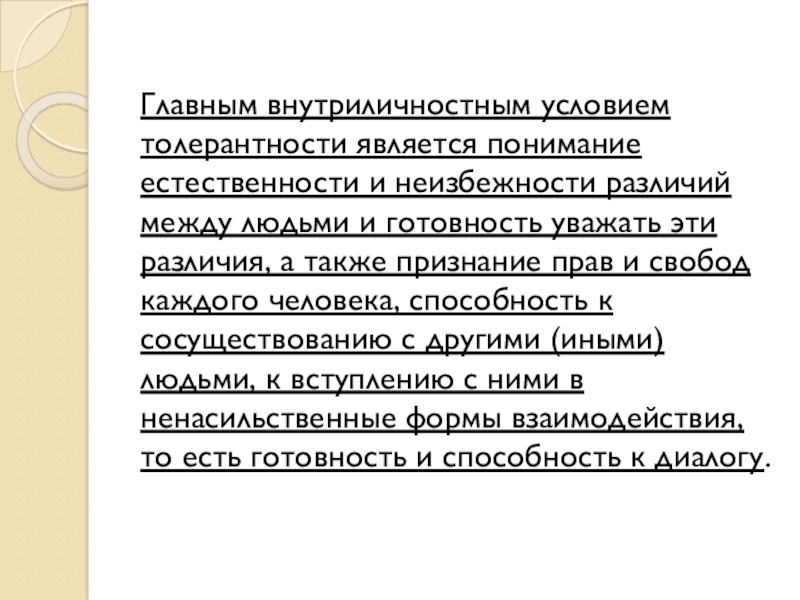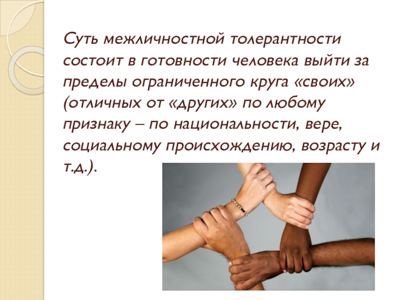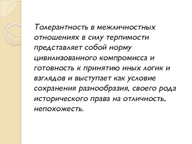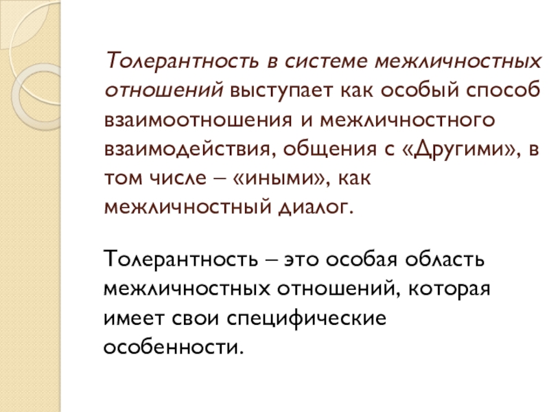 Толерантность – это особая область межличностных отношений, которая имеет свои специфические особенности.