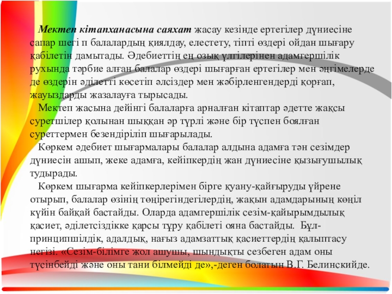 Слайд 13 Мектеп кітапханасына саяхат жасау кезінде ертегілер дүниесіне сапар шегі