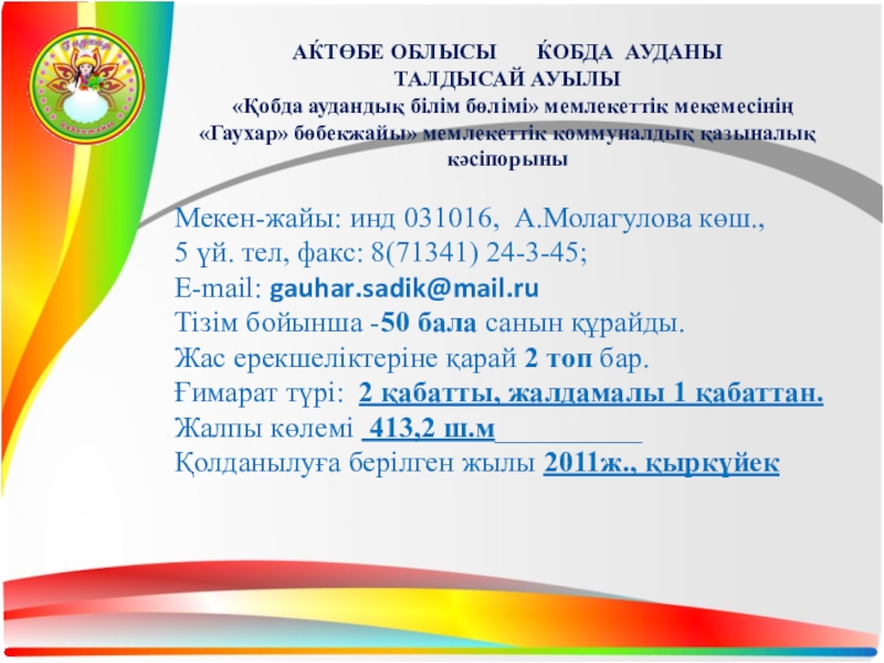«Гаухар» бөбекжайы» мемлекеттік коммуналдық қазыналық кәсіпорыны