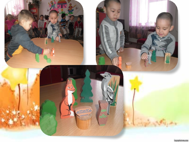 Үстел-үсті дидактикалық ойындар арқылы : Үстел –үсті дидактикалық ойындары таңертеңгілік балаларды қабылдау кезіне ойнатылады. Балалардың есте сақтау қабілетін таңертеңгілік уақытта жақсы қабылдайды. Сондықтан заттардың атын жаттау, немесе жалғасын табу, құрастыру, орнын табуға байланысты ойын түрлері ойнатылады.
