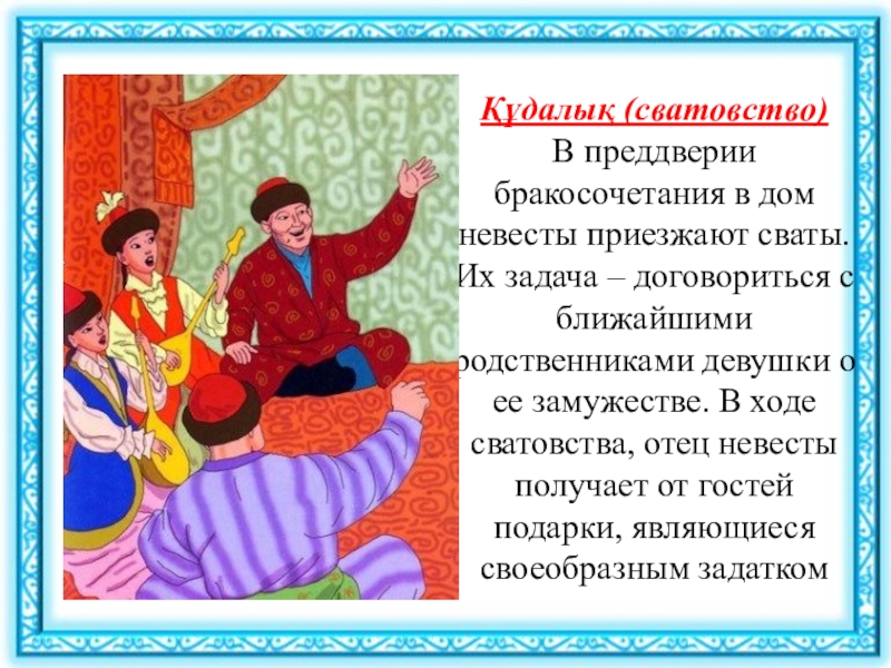 Слайд 11Құдалық (сватовство)