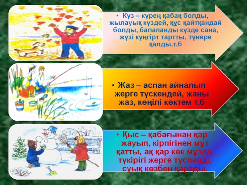 (жыл мезгілдерінің, төрт түлік малдың, адамның бейнесі)