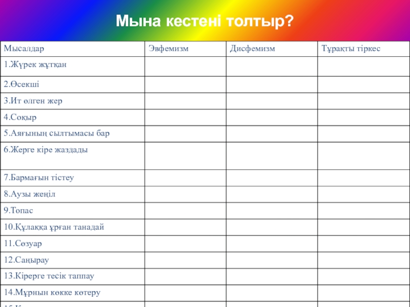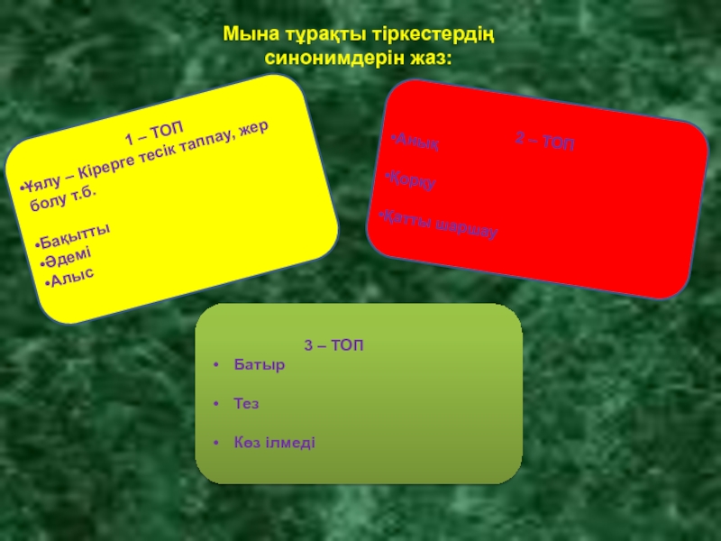 Мына тұрақты тіркестердің синонимдерін жаз: